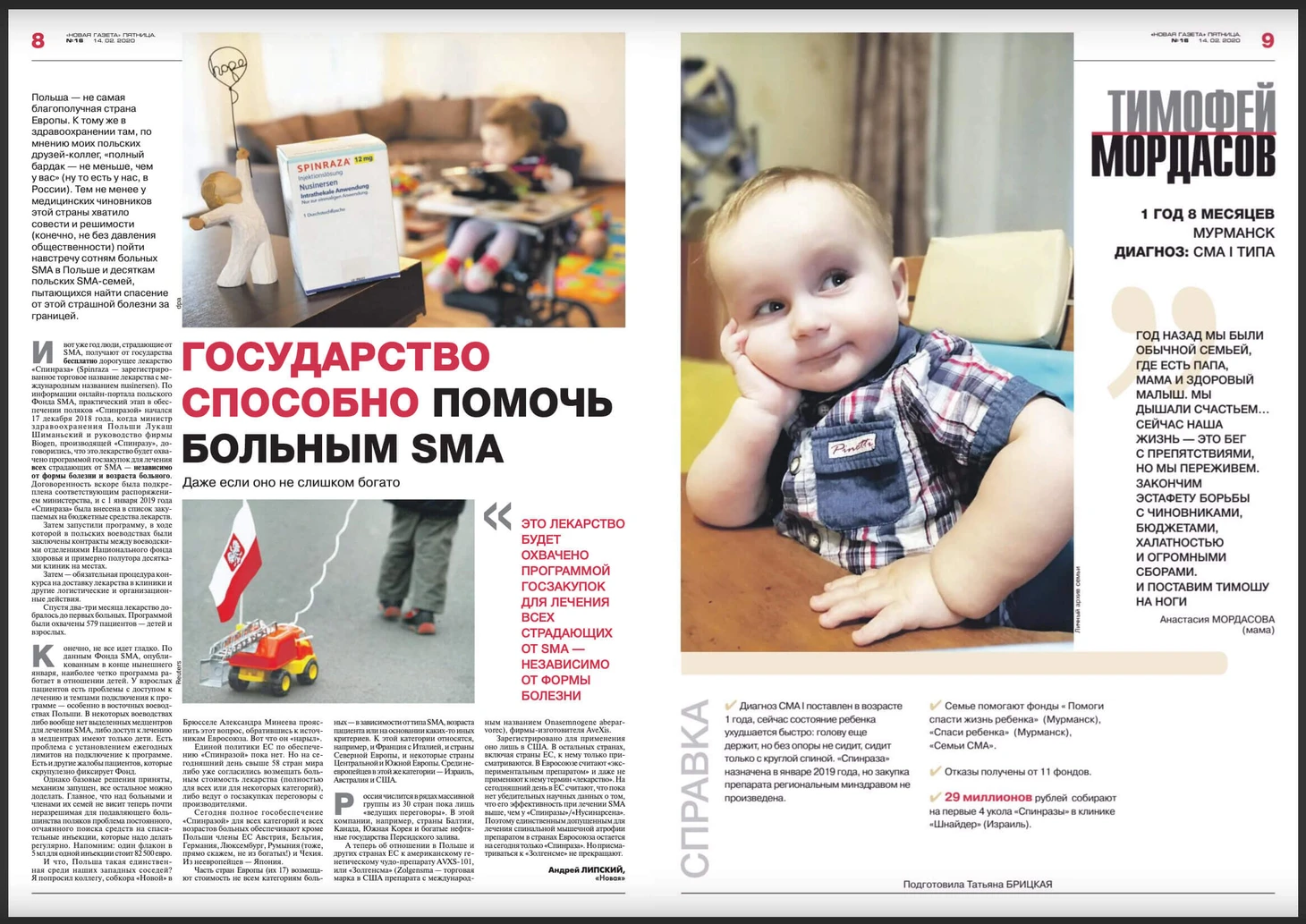 Сейчас вообще по всей стране родители судятся с правительством, губернаторами, местными отделами здравоохранения, чтобы те обеспечили детей «Спинразой». Мы требуем этого от депутатов, сенаторов, администрации президента. Напечатали даже специальный выпуск газеты, который разложили всем на рабочие места в Думе и Совете Федерации. Чтобы не делали вид, что не знают: «Ой, мы впервые услышали». В Совете быстро разрешили, в Думе решали три дня.