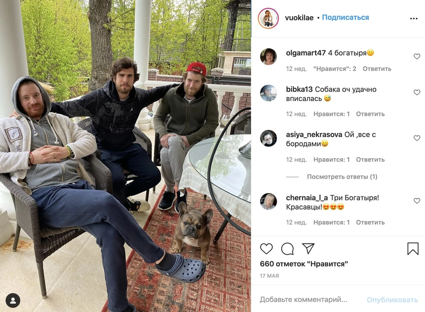 Во время паузы из-за пандемии Ларион и Карен регулярно появлялись на совместных дачных фото с Рублевки в инстаграмах Хачанова, его тети и жены Вуокилы.