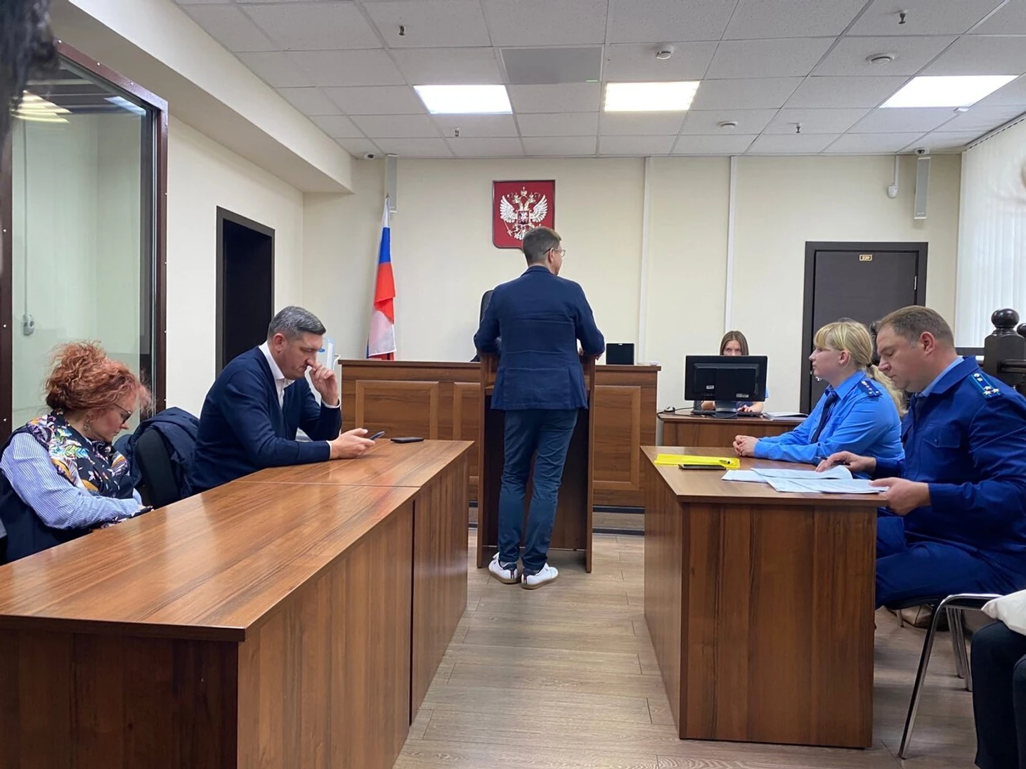 Заседание: на все ушло 20 минут, были два прокурора, говорили только судья и Ларин