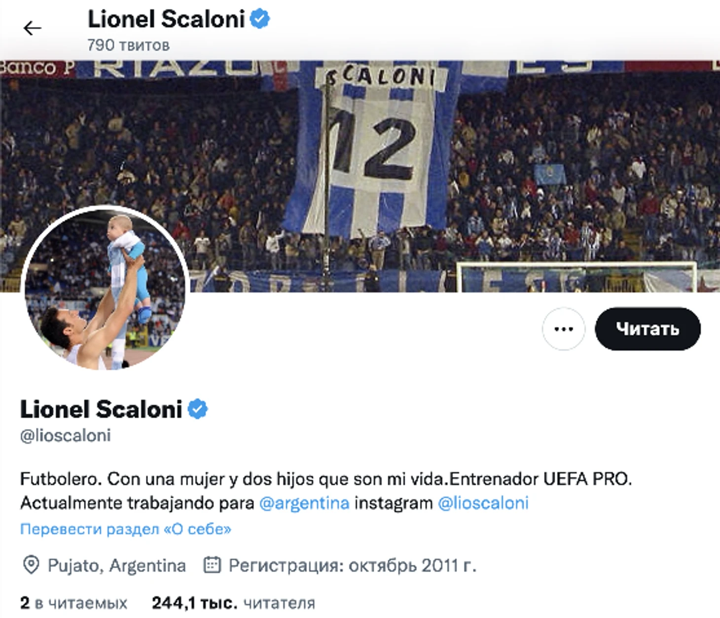 Может показаться элементом вежливости, но нет. Скалони – фанат «Депортиво». Он ретвитит благотворительные инициативы клуба и следит за изменениями формы (в 2021-м вернулись к вертикальным полоскам), а на обложке его твиттера – футболка с собственной фамилией в цветах «Депора», которую однажды вывесили болельщики на трибуне.