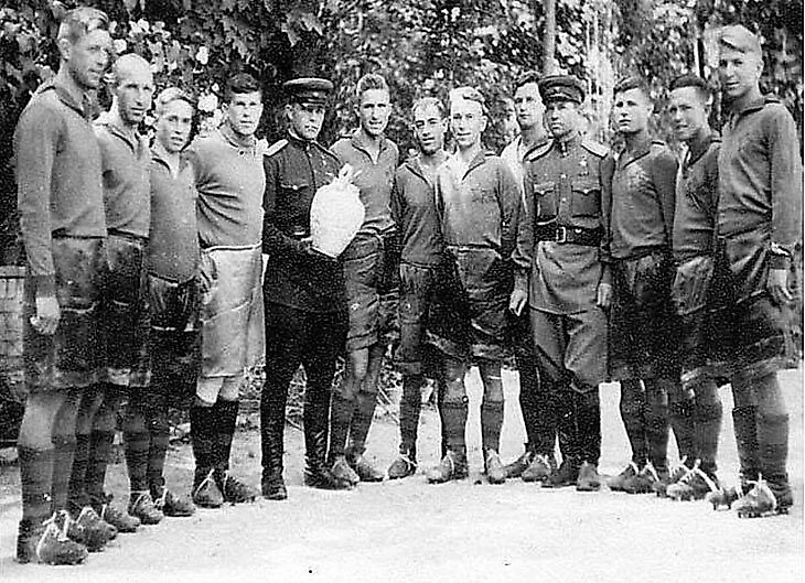 Опасаясь, что советская команда не выиграет, они искали решение. Идею вбросил подполковник Руденко: хорошо бы усилить коллектив НКВД настоящими футболистами, которые формально числятся в армии. В основном это были динамовцы из ОМСБОН – Отдельной мотострелковой бригады особого назначения.