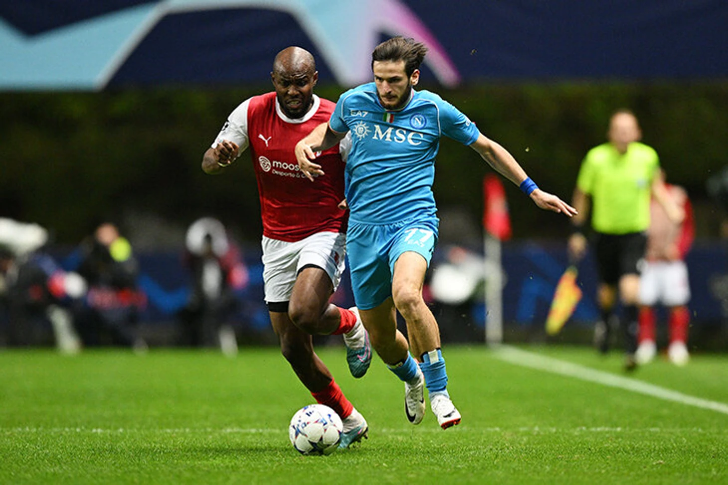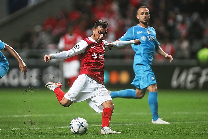 «Брага» играла смело, но в своем стиле – регулярно проваливалась в обороне. В середине тайма случилось безумие. После удара Политано мяч заметался по вратарской: добивали Осимхен, Оливера и Хвича, но ворота в последний момент спасал кто-то из браганцев.