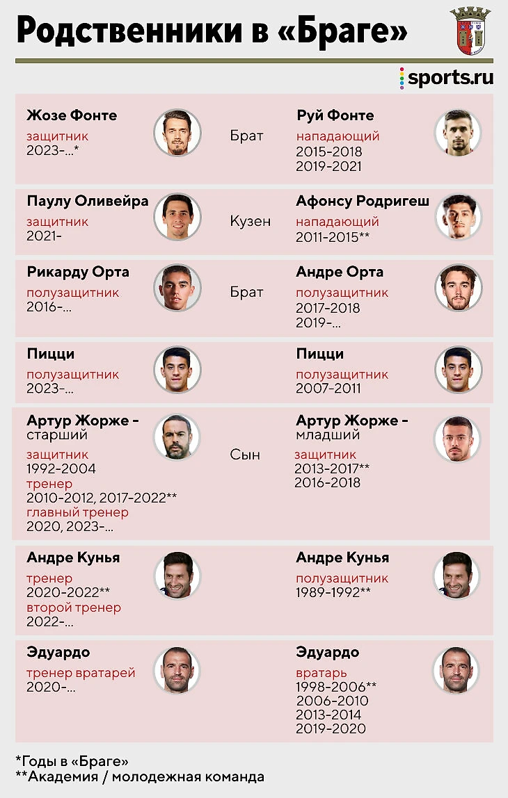 То же самое – с тренерами. Артур Жорже и два его помощника – бывшие игроки «Браги». Но история босса – удивительнее всего. Он был защитником, дважды приходил в клуб как тренер – академии и молодежной команды, в 2020-м на несколько матчей возглавил первую команду, а еще в «Браге» играл его сын.