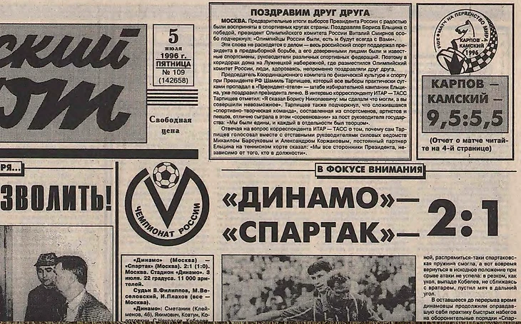«Спорт Экспресс» выпустил новый номер только через три дня и не написал о туре или выборах ни одной строки. Впереди были новые матчи, европейский футбол и Олимпиада в Атланте – газета сфокусировалась на них.