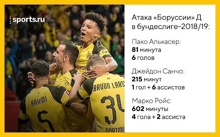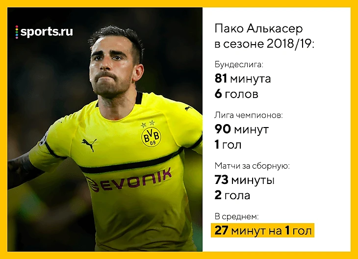 «Конечно, мы рассчитывали, что Алькасер впишется в игру «Боруссии», – говорит спортивный директор Михаэль Цорк. – Ему нужно было залечить травму и предполагалось, что адаптация займет какое-то время. Но никто не мог подумать, что он забьет 6 мячей, сыграв в бундеслиге 81 минуту. Это фантастика».