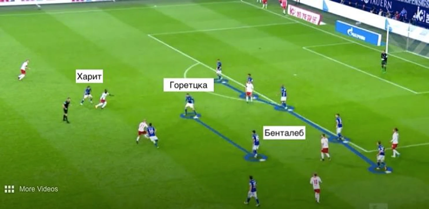 Насыщенная средняя зона в формации 5-2-3 (к связке Горетцка – Бенталеб постоянно примыкал дополнительный полузащитник) при перехвате мяча организовывала численное преимущество, поэтому сопернику приходилось звать на помощь крайних защитников.