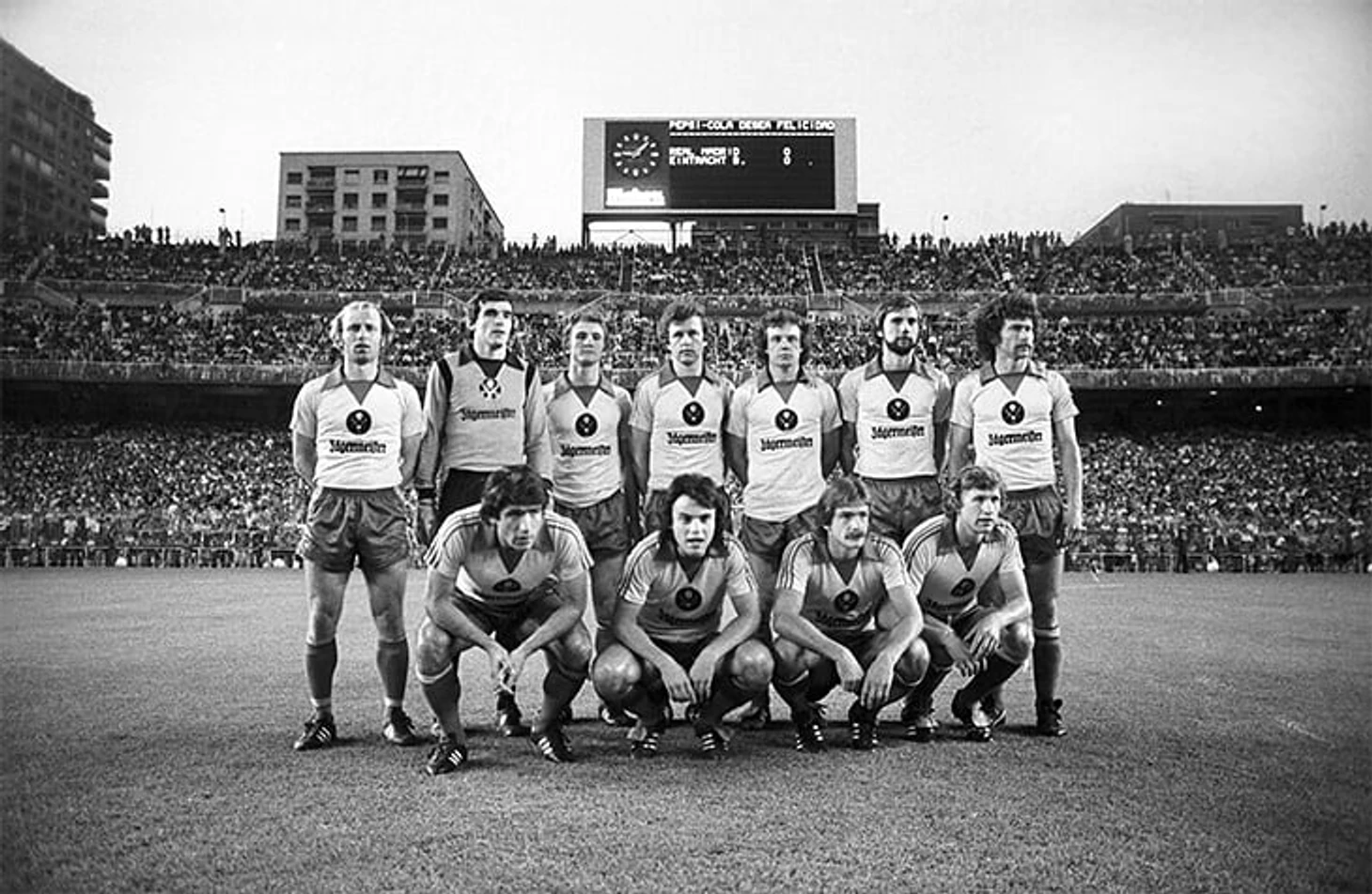 В том же 77-м «Брауншвейг» и «Реал» сыграли товарищеский матч в Мадриде. «100 тысяч человек на «Сантьяго Бернабеу» следили за каждым нашим движением на разминке, – вспоминал вратарь «Айнтрахта» Бернд Франке. – Никогда не забуду удивленные лица испанцев, когда мы сняли тренировочные костюмы и они увидели оленя на наших футболках». У самого «Реала» титульный спонсор появится только через 5 лет (Zanussi в 1982-м).