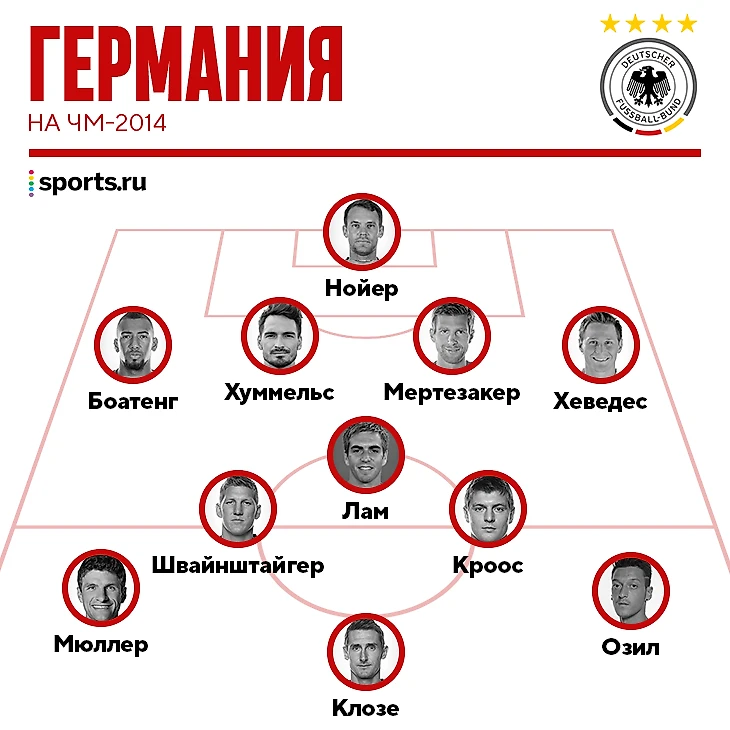 В Бразилии у немцев наконец получилось объединить два стиля, которыми команда пользовалась на предыдущих турнирах. Игроки могли свободно переходить от футбола, основанного на владении мячом, к контратакующим комбинациям и обратно. Подсмотренный у Гвардиолы прием с переводом Лама в центр заставил немного изменить привычную расстановку.