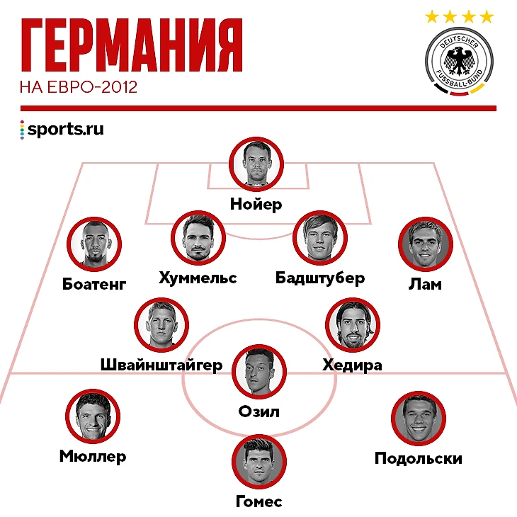 На Евро-2012 у немцев была самая молодая заявка на турнире. Раскрыться той команде помешали травмы лидеров (Гетце, Клозе, Швайнштайгера) и паршивое настроение баварских игроков, в решающий момент проигравших весной-2012 три турнира.
