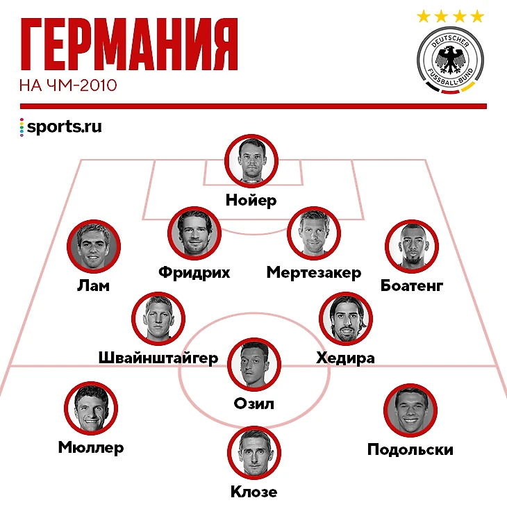 «Пространства на поле становится все меньше – и времени на принятие решений тоже, – объяснял главный тренер. – Индивидуальные навыки футболистов выходят на первый план». Большинство голов на ЧМ-2010 немцы забили в течении 10 секунд после отбора мяча. Это была мощнейшая контратакующая бригада, в которой голевую передачу мог отдать даже Нойер.