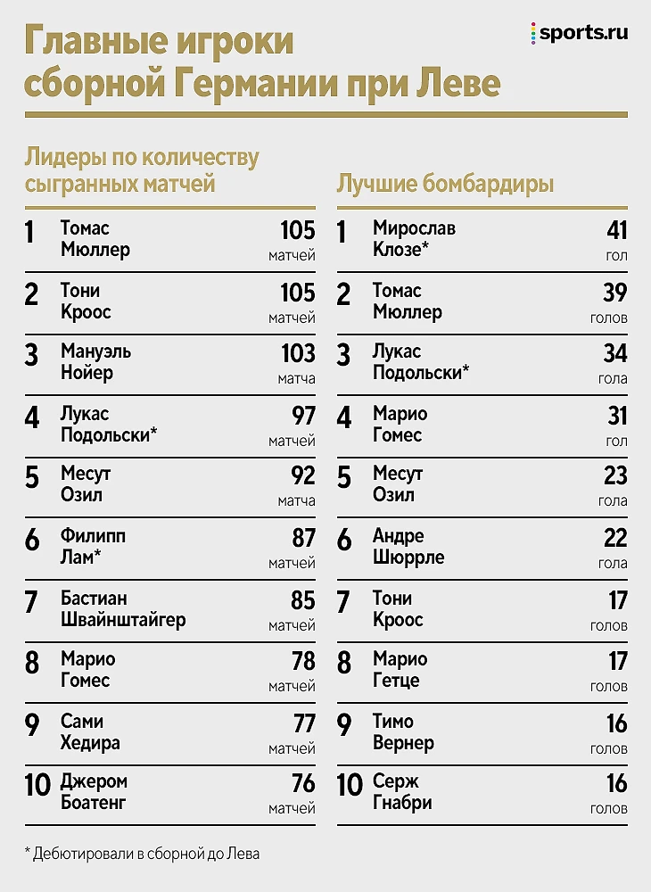 В середине нулевых игра Германии слишком зависела от Баллака. «От меня требуют, чтобы я отбирал мяч, подтягивал его в центр, отдавал пас самому себе в финальную треть и забивал», – жаловался Михаэль. С приходом Лева в каждой линии у немцев появился топ-игрок, который качественно делал свою работу, и зависимость от капитана была уже не такой заметной.