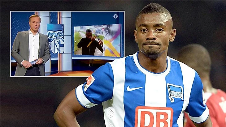 Форвард «Герты» своим нахождением в столице Германии наносит вред не только местной футбольной команде, но и облику целого города. Накануне матча с «Шальке» африканец принял участие в промо-ролике, посвященному грядущему поединку. В нем он должен был с помощью молотка и зубила отколоть кусок Берлинской стены, что по задумке должно было символизировать взлом обороны будущего соперника. Калу вошел в роль и так энергично работал инструментом, что изрядно подпортил участок, который называется «Галерея восточной стороны». Сумма ущерба составила 10 000 евро.