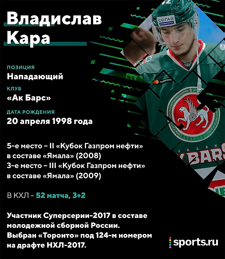 Многие ожидали, что Кара заявит о себе еще на МЧМ-2018, но в заявку на турнир он не попал. Зато куда больше о его таланте говорит тот факт, что Владислав получил место в «Ак Барсе» в постчемпионский сезон казанцев. Даже Билялетдинов доверял молодому нападающему – звучит фантастически, но это правда. Кара бился – и заслужил такое отношение.