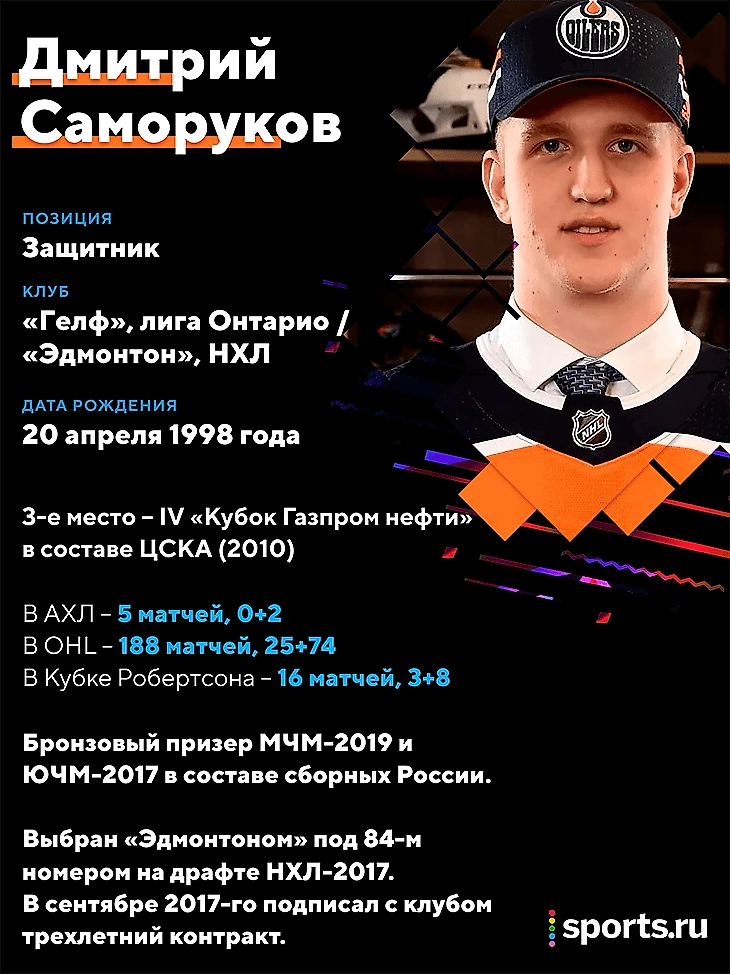Саморуков не хотел оставаться в России и уже в 17 лет рванул за океан. В итоге через год он получил то, о чем мечтают многие взрослые хоккеисты – контракт с клубом НХЛ. Да, стандартный трехлетний для новичка, и в «Эдмонтоне» Дмитрий так и не дебютировал, но, кажется, это дело времени: его габариты хвалят, он отлично показал себя на МЧМ-2019 и уже гораздо увереннее играет в OHL. Тренировочные лагеря этим летом станут во многом определяющими для его перспектив в «Ойлерс».