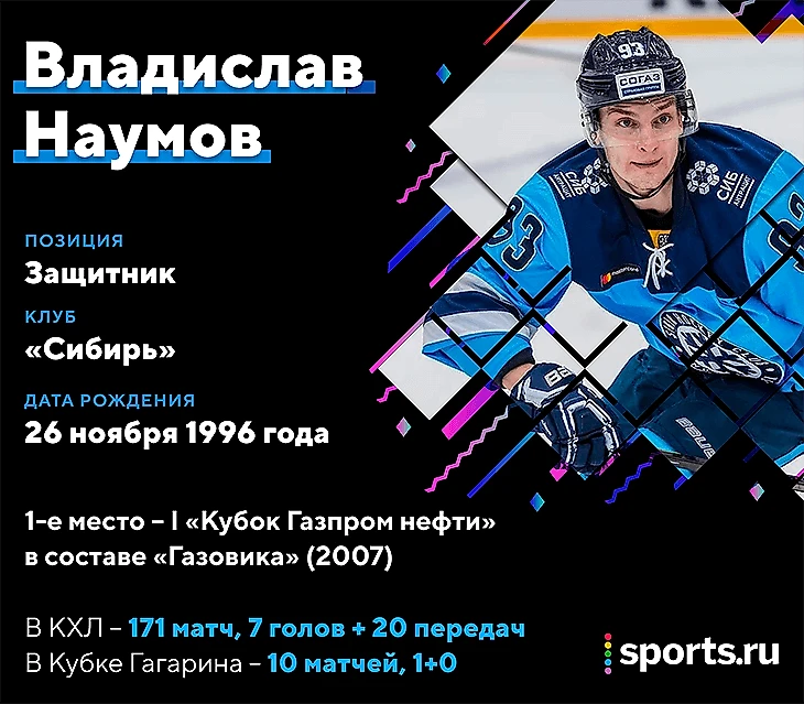Наумов отпахал три сезона МХЛ в «Тюменском легионе» и обратил на себя внимание «Сибири» – там тренеры не стали ссылать 19-летнего парня в молодежку и дали шанс сразу заиграть на взрослом уровне. Он им воспользовался.