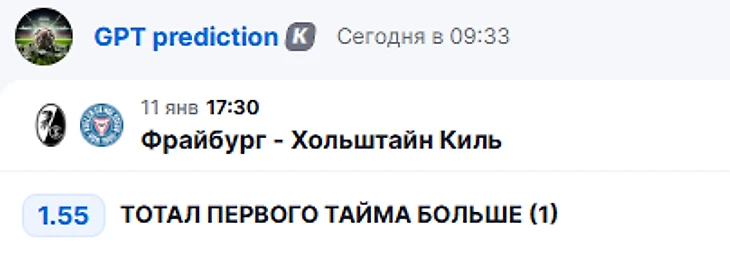 GPT-прогноз на матч Фрайбург - Хольштайн (17:30 мск.)