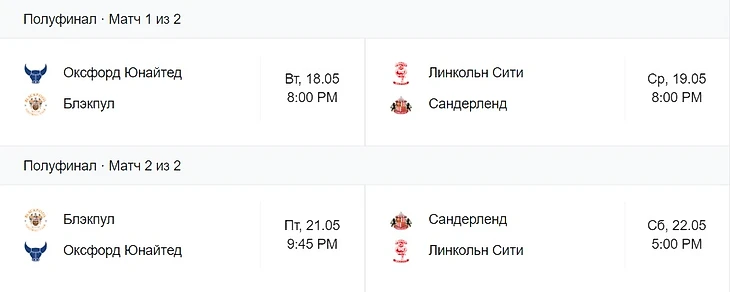 Далее у нас 4 команды, которые отправляются в Лигу 2 – это «Рочдейл», «Нортхэмптон», «Свиндон Таун» и «Бристоль Роверс». Их место займет «Челтенхэм», «Кембридж Юнайтед» и «Болтон». Четвертое место получит победитель плей-офф. Две пары сложились следующим образом: «Моркам» – «Транмир Роверс», «Ньюпорт» – «Форрест Грин Роверс».