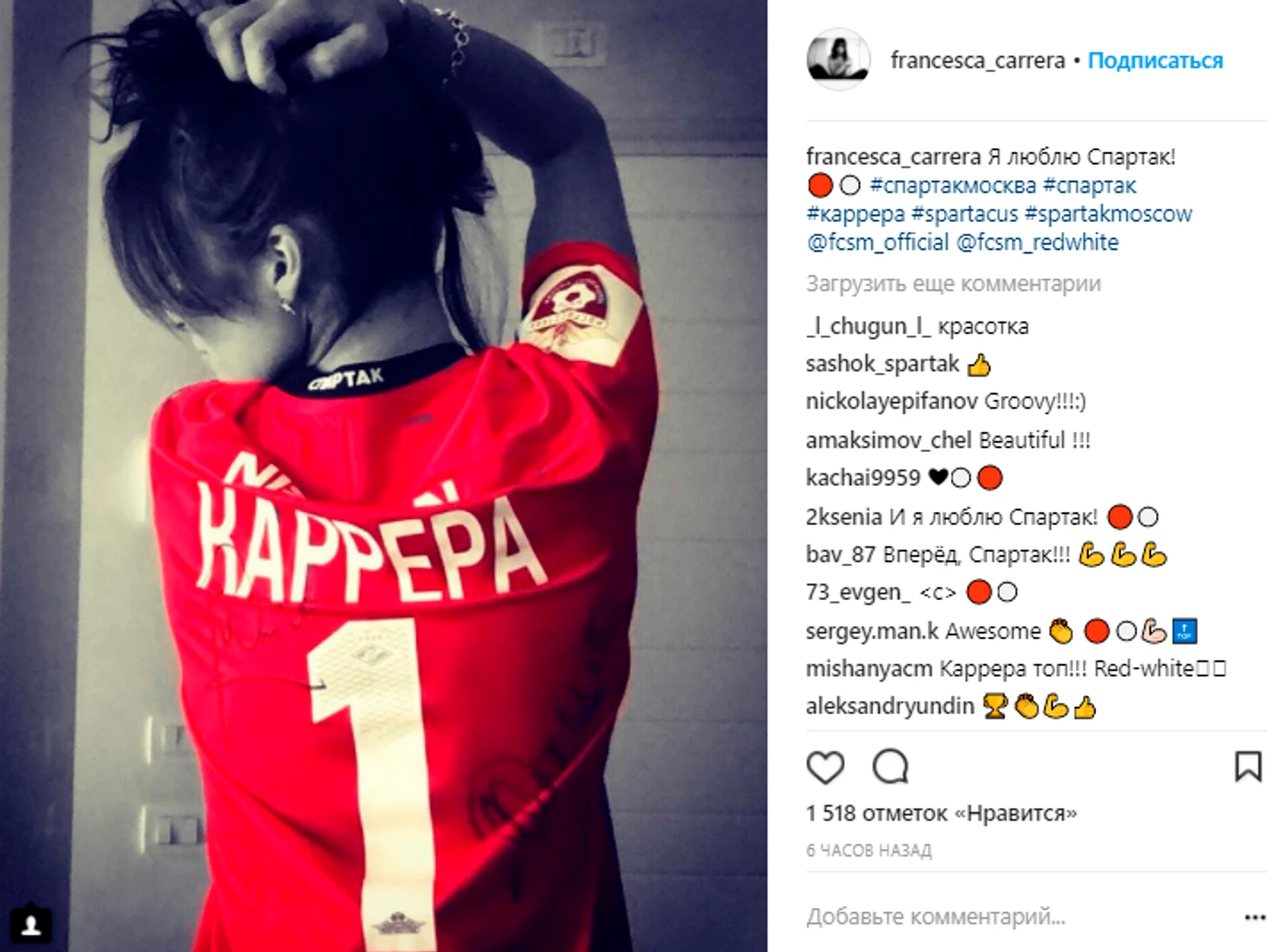 «Я люблю Спартак!» Дочка Карреры сфоткалась в футболке красно-белых