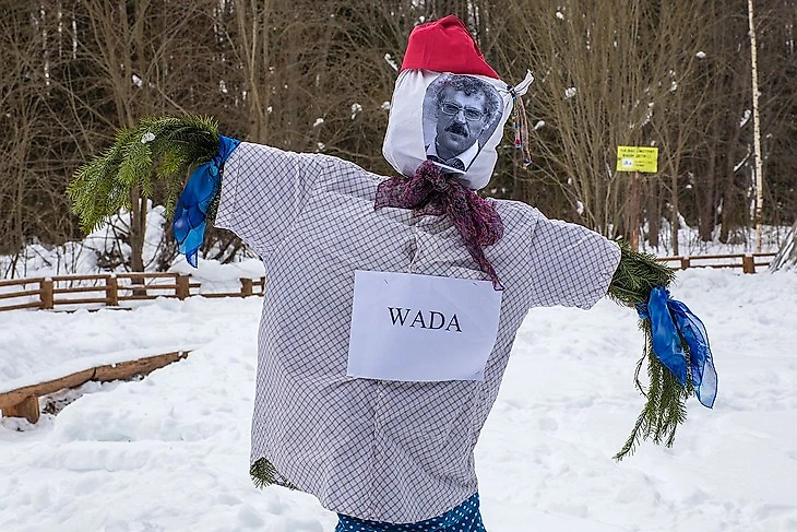 В Перми на экологической тропе «Липовая гора» на Масленицу сожгли чучело с фотографией Григория Родченкова и листочком WADA.