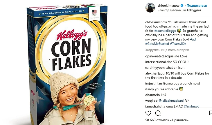 Олимпийская чемпионка Хлоя Ким так любит поесть, что попала на коробку для завтрака