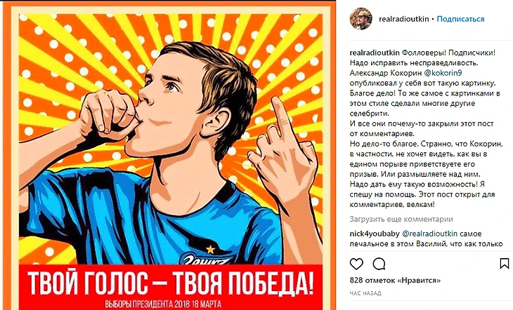 Российские футболисты призывают своих подписчиков в инстаграме прийти на выборы 18 марта. Так сделал Александр Кокорин, до этого – Артем Ребров.