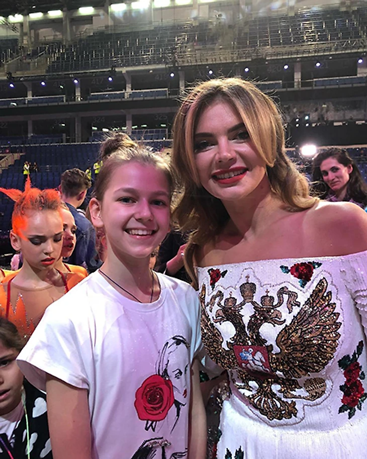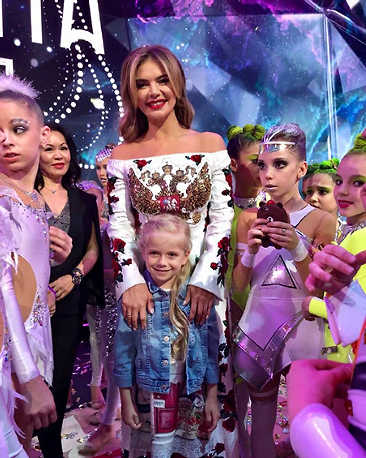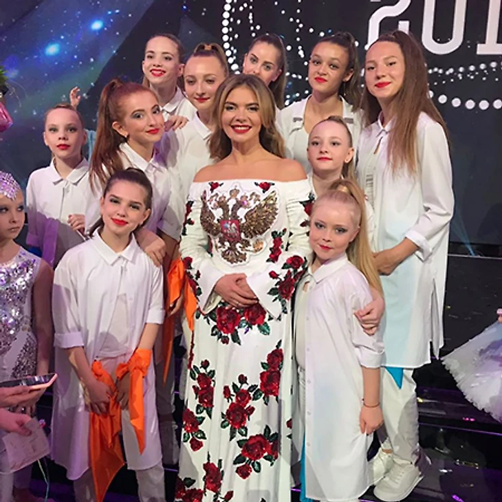 Алина Кабаева пришла на фестиваль художественной гимнастики в очень патриотичном платье. На фестиваль «Алина», который проводится при поддержку благотворительного фонда Кабаевой, девушка пришла в белом платье в цветах и с гербом большим России.