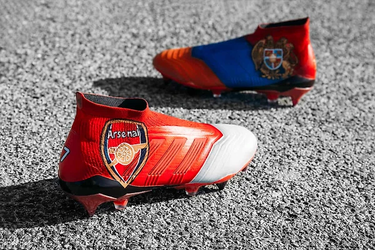Adidas сделал для Генриха Мхитаряна специальные бутсы – с символикой лондонского «Арсенала» и Армении. На пятках обуви указаны номера, под которыми Генрих играет в клубе и сборной. На внешней стороне бутс – гербы Армении и «Арсенала».