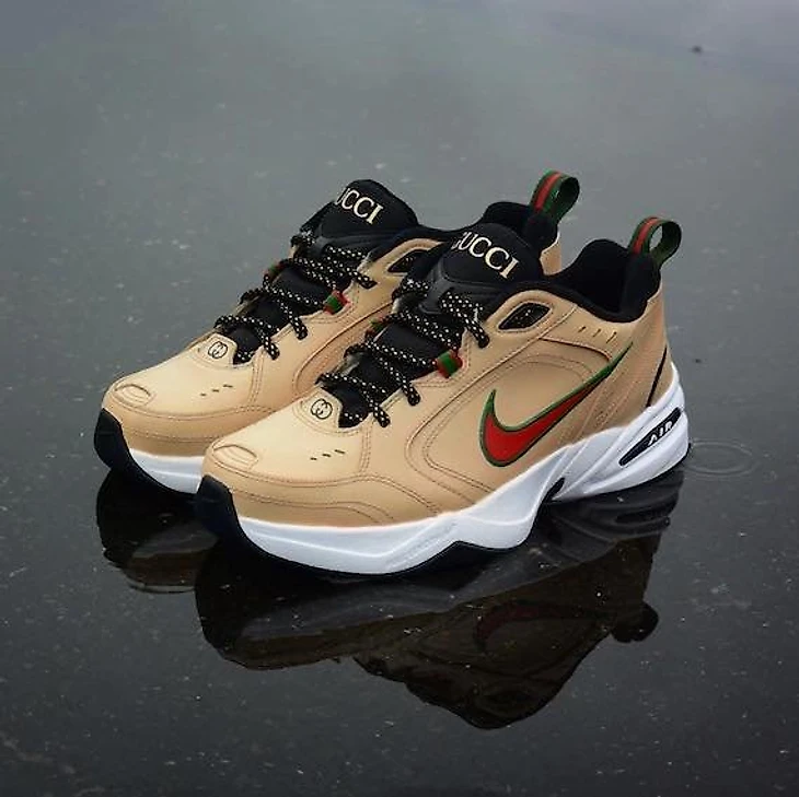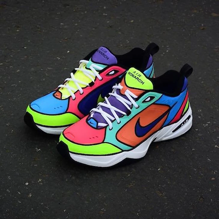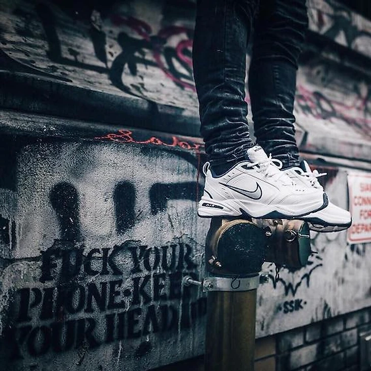 Модель называется Nike Air Monarch IV. Первые «монархи» появились еще в начале нулевых, а в 2013-м Air Monarch IV стали стали самой продаваемой моделью бренда. Тогда у них был имидж дедовских кроссовок, но в 2017-м «монархи» внезапно стали модными. Все благодаря тренду на тяжеловесные сникеры с массивной подошвой, запущенному моделью Balenciaga Triple S.
