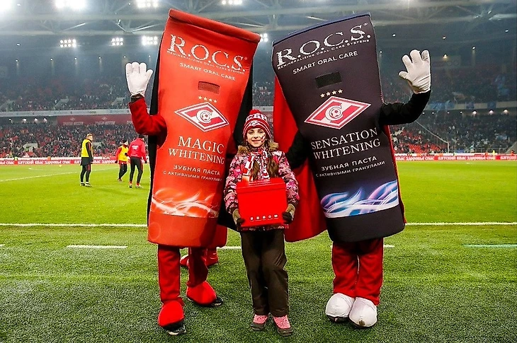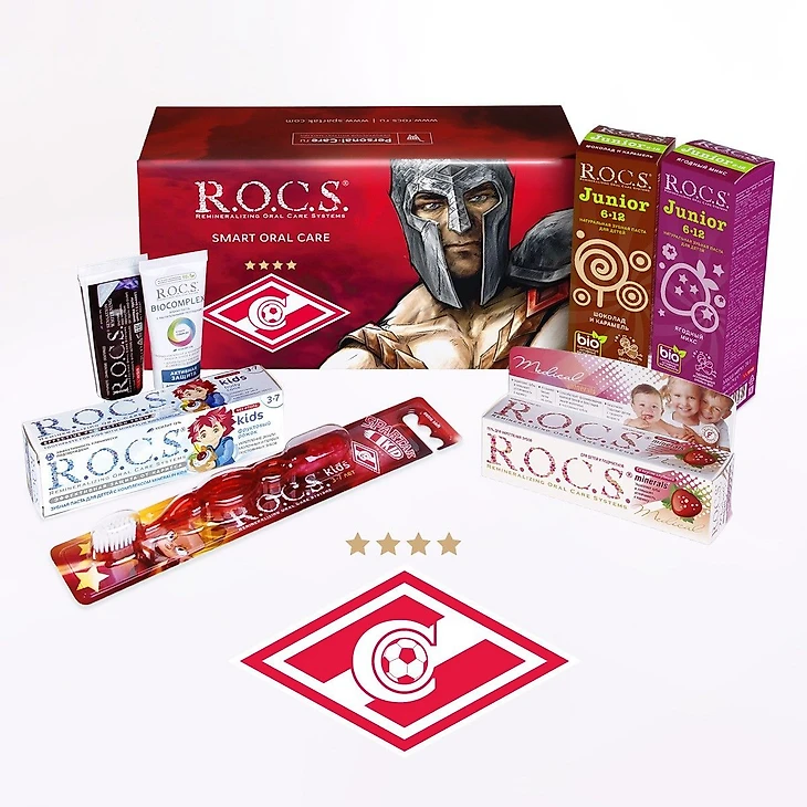 R.O.C.S. является спонсором «Спартака» с конца 2017 года. У зубной пасты есть отдельный набор для болельщиков красно-белых: 2 зубных щетки, 2 зубных пасты, зубная нить, ополаскиватель и коробку можно купить за 3 тысячи рублей.
