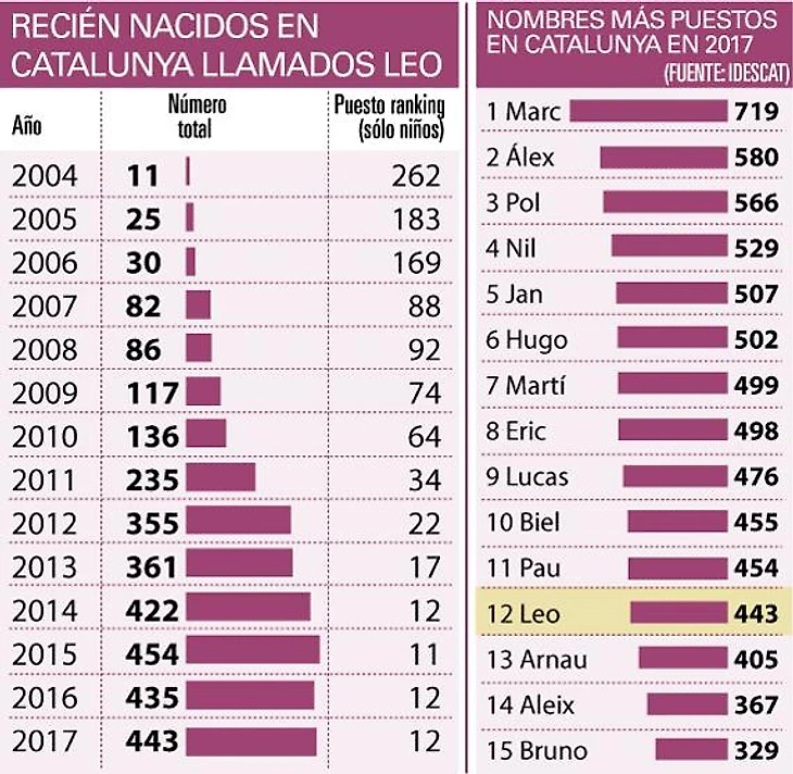 В начале нулевых каталонцы почти не называли детей Лео. За 17 лет популярность имени выросла на 4000%