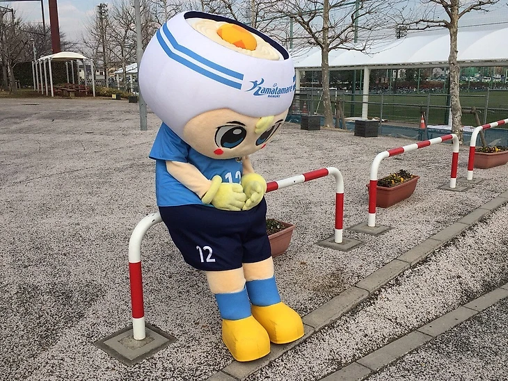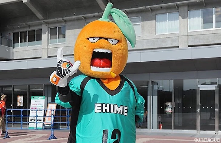 Ну а дальше – просто странные и необычные маскоты. Например, злой вратарь Эхиме, у которого вместо головы апельсин. Наверное, поэтому и злой. Это талисман команды второго дивизиона «Иеканта».