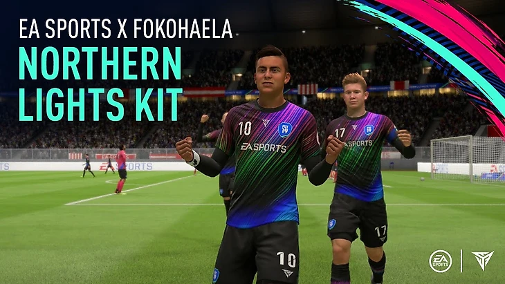 FOKOHAELA даже делали форму для FIFA 19 – например, эта футболка для Ultimate Team называется «Северное сияние» и посвящена футбольным болельщикам скандинавских стран.