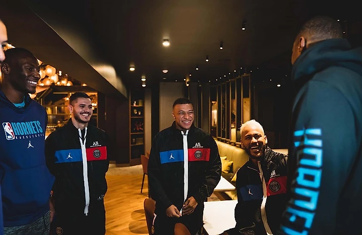 С парнями из «Шарлотт» футболисты тоже пообщались. Специально к историческому матчу «ПСЖ» и Air Jordan подогнали презентацию четвертой формы. В ней помимо Мбаппе и Неймара поучаствовали баскетболисты «Хорнетс» – француз Николя Батюм и конголезец Бисмак Бийомбо.