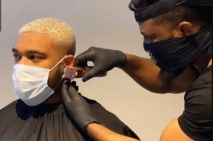 В отличие от Орье, который не выложил фото самого процесса, Айб выложил в сторис фото, как его стрижет барбер Никки Окиере. Они оба в масках, но постановления британского правительства запрещают даже такую стрижку.