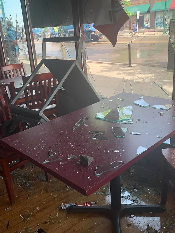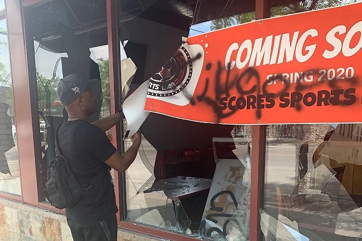 Но беспорядки продолжаются и в ряде городов переросли в погромы: мародеры крушат рестораны, магазины и другие заведения. Полностью разрушенным оказался спортбар Scores Sports в Миннеаполисе – он должен был открыться 1 июня. Вот так бар выглядел еще в четверг.