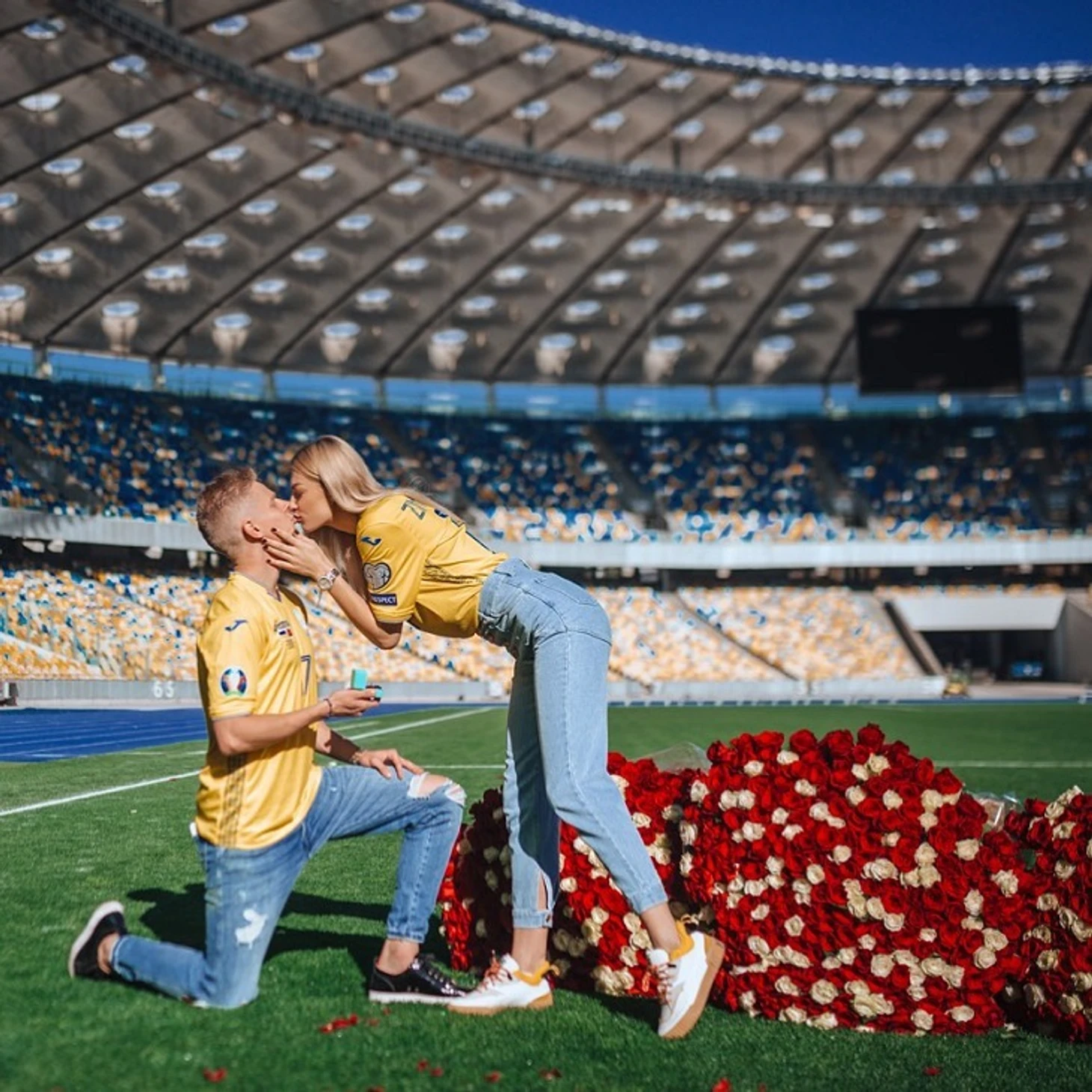 В октябре сборная обыграла Португалию (2:1) и вышла на Евро, а Зинченко решил закрепить приятные эмоции и сделал Владе предложение. Для такого события Алекс выбрал фартовый «Олимпийский» в Киеве и подготовил огромный букет из красных и белых роз.