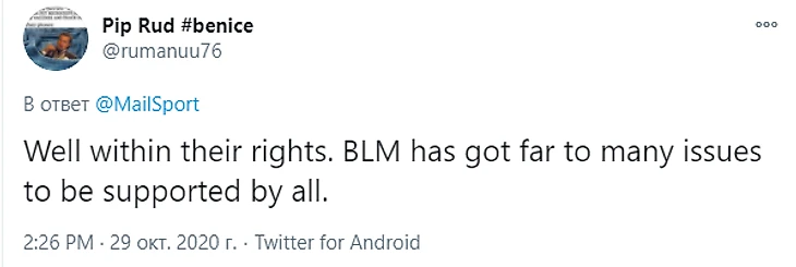 «Все в рамках их прав. К BLM очень много вопросов, чтобы их поддерживали все».