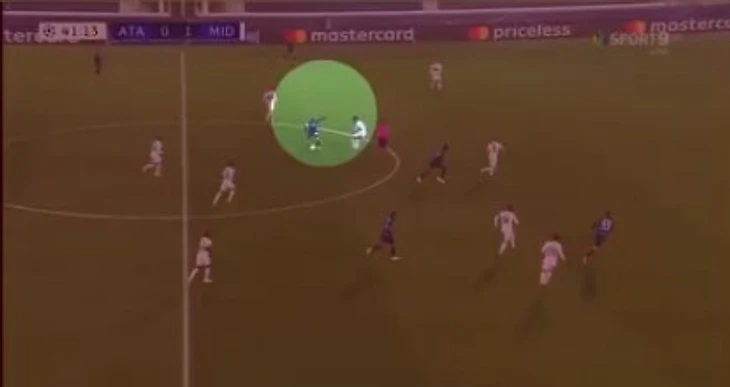 Тут он в центре вырезает пас.