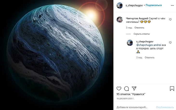 В предыдущем посте Чепчугов пишет, что отец советует ему не говорить метафорами и афоризмами. «Тебя воспринимают как спортсмена, поэтому не понимают многие», – передает вратарь слова папы.