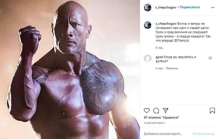 Периодически экс-вратарь ЦСКА тегает Дуэйна Джонсона.