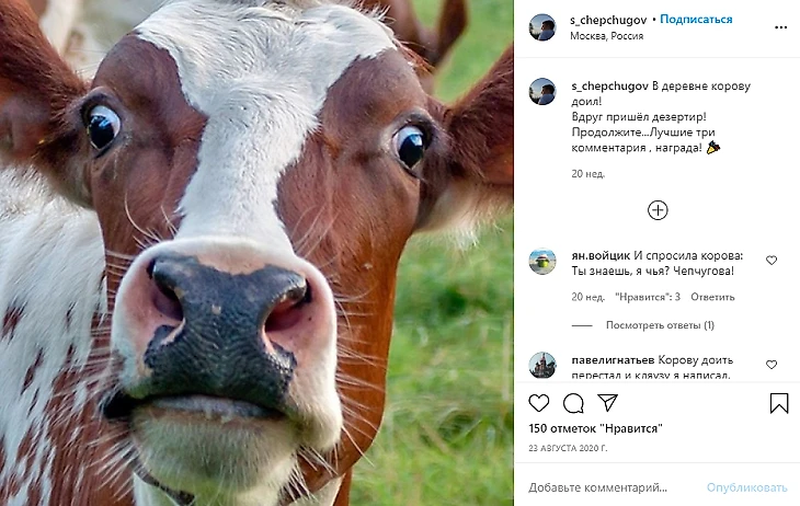 Инстаграм Чепчугова – очень странная выставка: коровы, философские картинки и метафоры, которые никто не понимает
