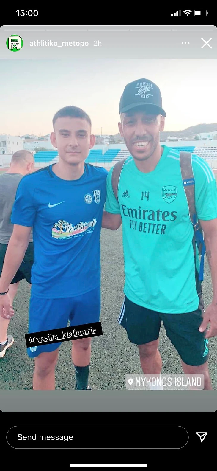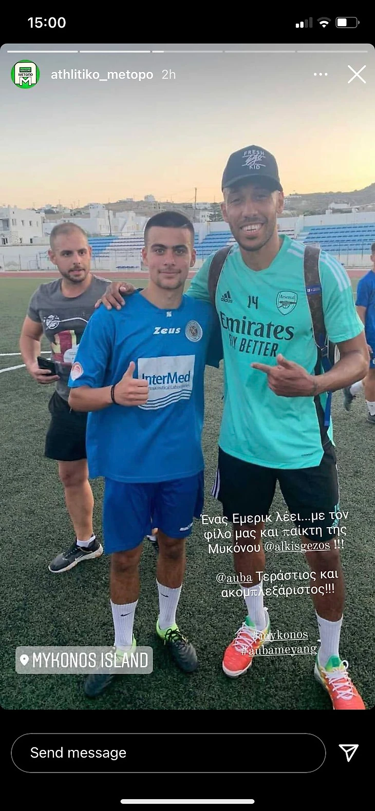 Обамеянг приехал на тот самый остров Миконос, где прошлом году устроил дебош Харри Магуайр. Пьер-Эмерик оставляет там о себе совершенно другое впечатление. Помимо отдыха на берегу Эгейского моря 32-летний Обамеянг нашел время, чтобы потренироваться с парнями из академии «Миконоса» (основа играет в третьей греческой лиге).