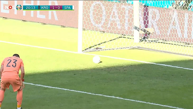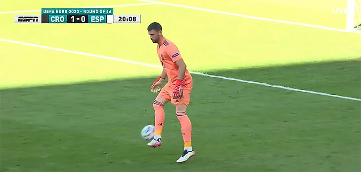 На 20-й минуте Педри отдал пас вратарю практически с центра поля. Мяч скакнул перед Унаи Симоном – кипер не сумел обработать мяч. И тот полетел прямо в ворота.