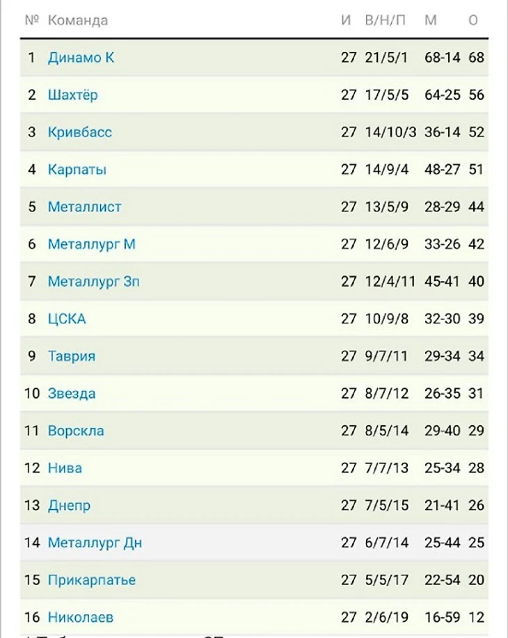 Это матч 28-го тура – «Николаев» шел последним, а «Днепр» испытывал большие проблемы. Так выглядела таблица перед игрой – за три тура до финиша чемпионата. 16-е место – вылет, 15-е – стыки за выживание.