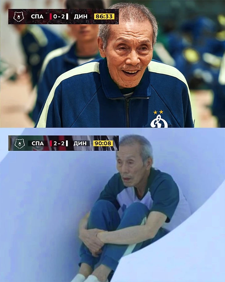 «Спартак» после матча ответил мемом со смертельно больным дедулей О Иль Намом (слегка перекрасив костюм в динамовские цвета и добавив эмблему). Это один из участников игры на выживание.