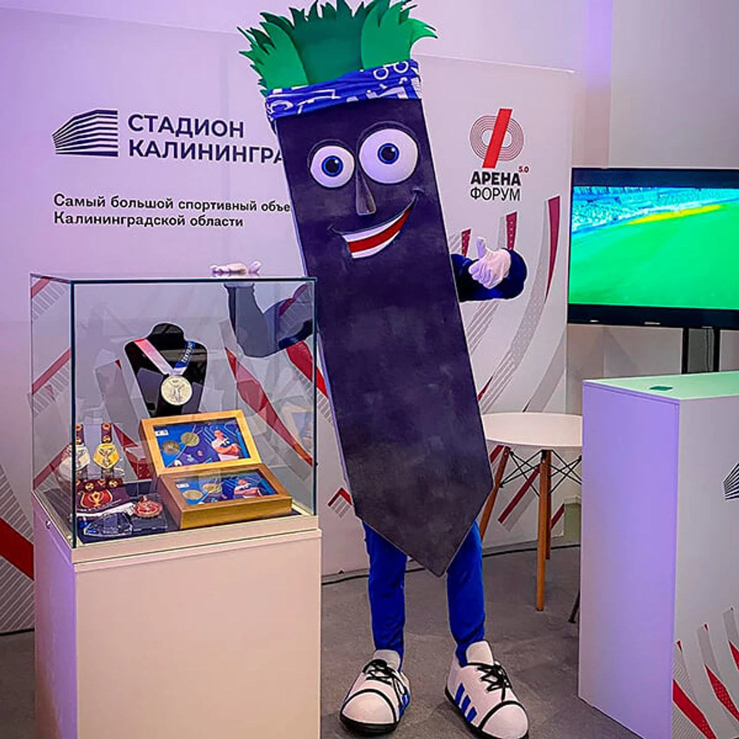 Кажется, в Калининграде придумали самого странного футбольного маскота. Его представили на мероприятии спортивных объектов «Арена Форум», которое прошло в Москве.