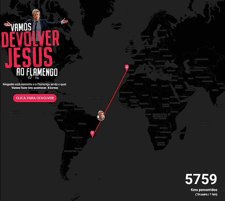 Оригинальная акция от фанатов «Бенфики» – сделали сайт, где каждый клик двигает тренера обратно в Бразилию. Слишком недовольны Жезушем