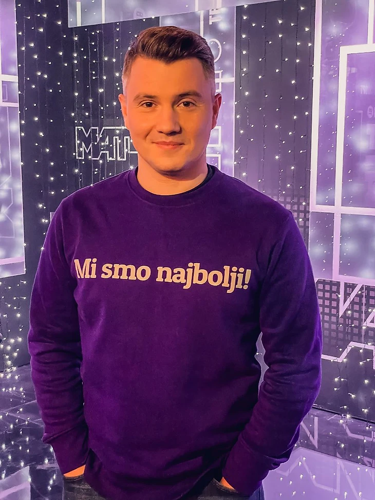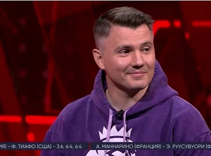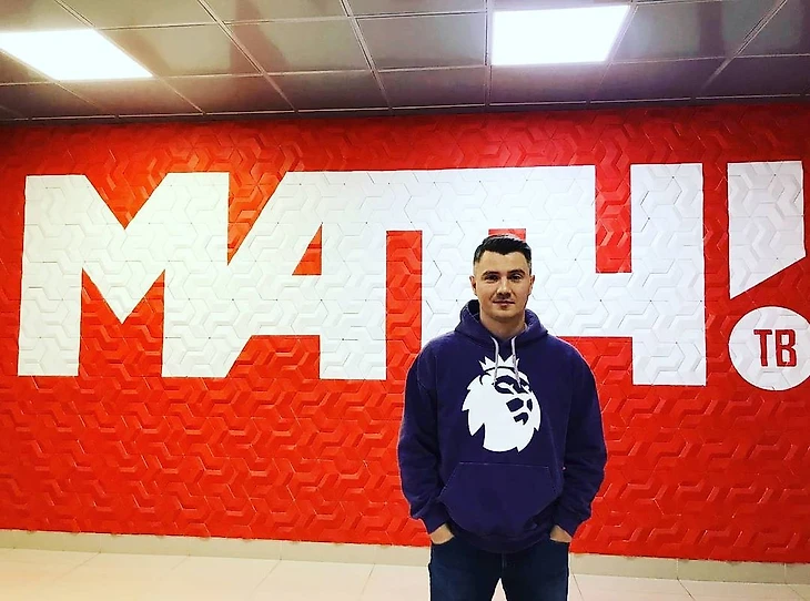 Мы снова увидим Стогниенко на «Матч ТВ» в фиолетовом – год назад он поздравил канал с юбилеем в фирменной толстовке «Okko»