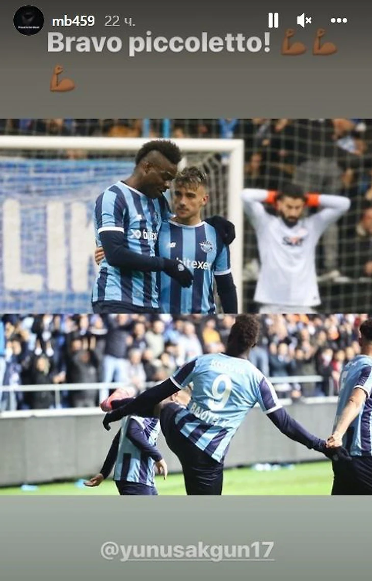 В итоге 21-летний турок оформил дубль, а «Галатасарай» так и не отличился – важная победа «Адана Демиспор» в борьбе за топ-3 (пока отстают на три очка). А Балотелли после матча развеял все слухи о возможном конфликте, похвалив Акгюна в инстаграме: «Браво, малыш».