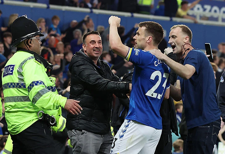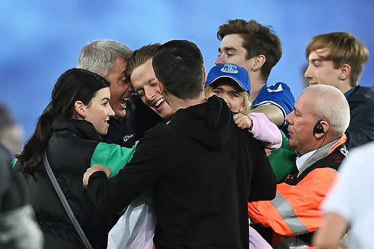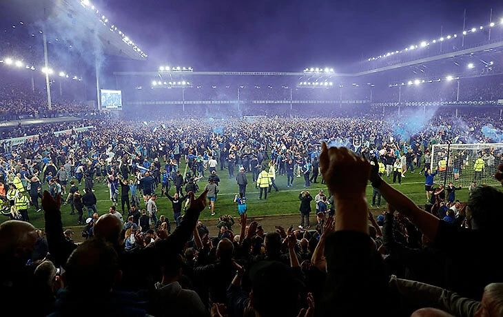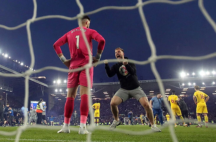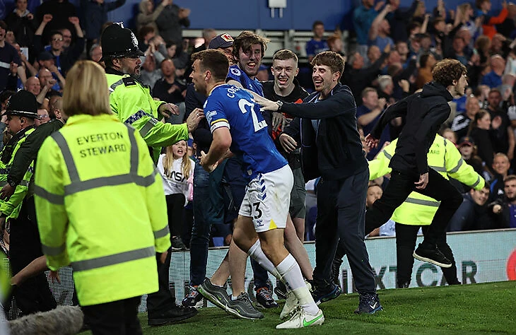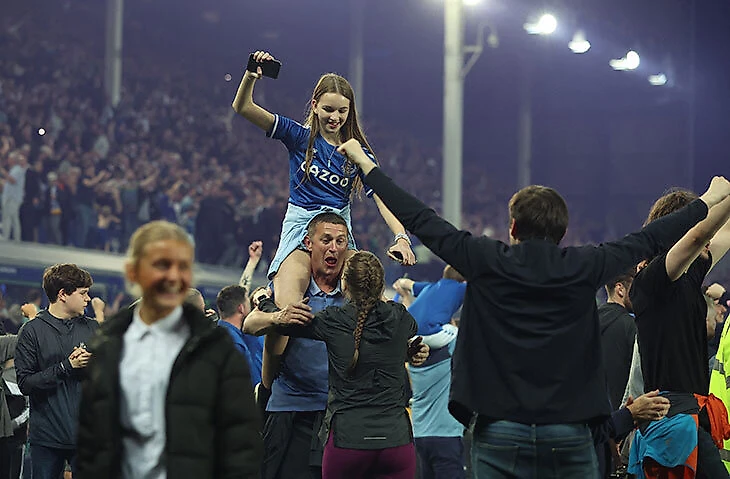 Фанаты «Эвертона» дважды выбежали на поле. Сначала праздновали камбэк, потом – невылет из АПЛ